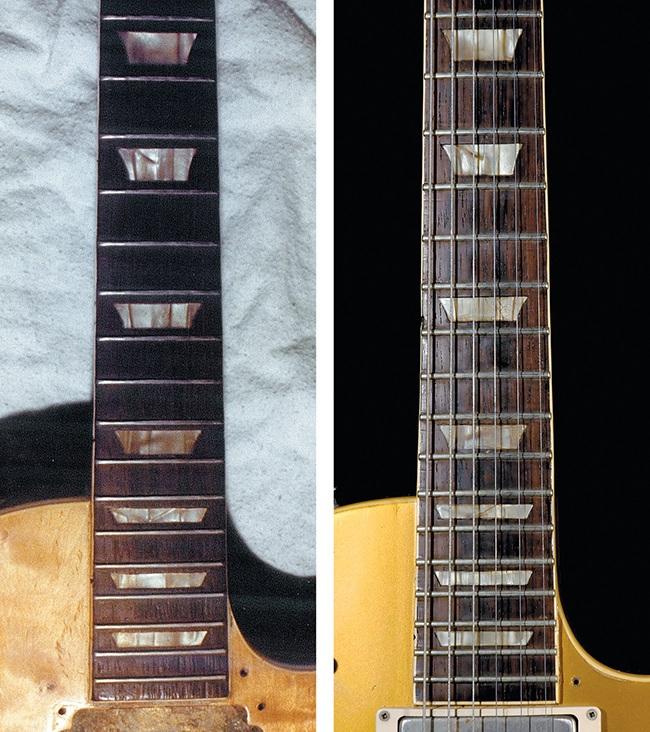 (LEFT) The fretboard of the goldtop owned by