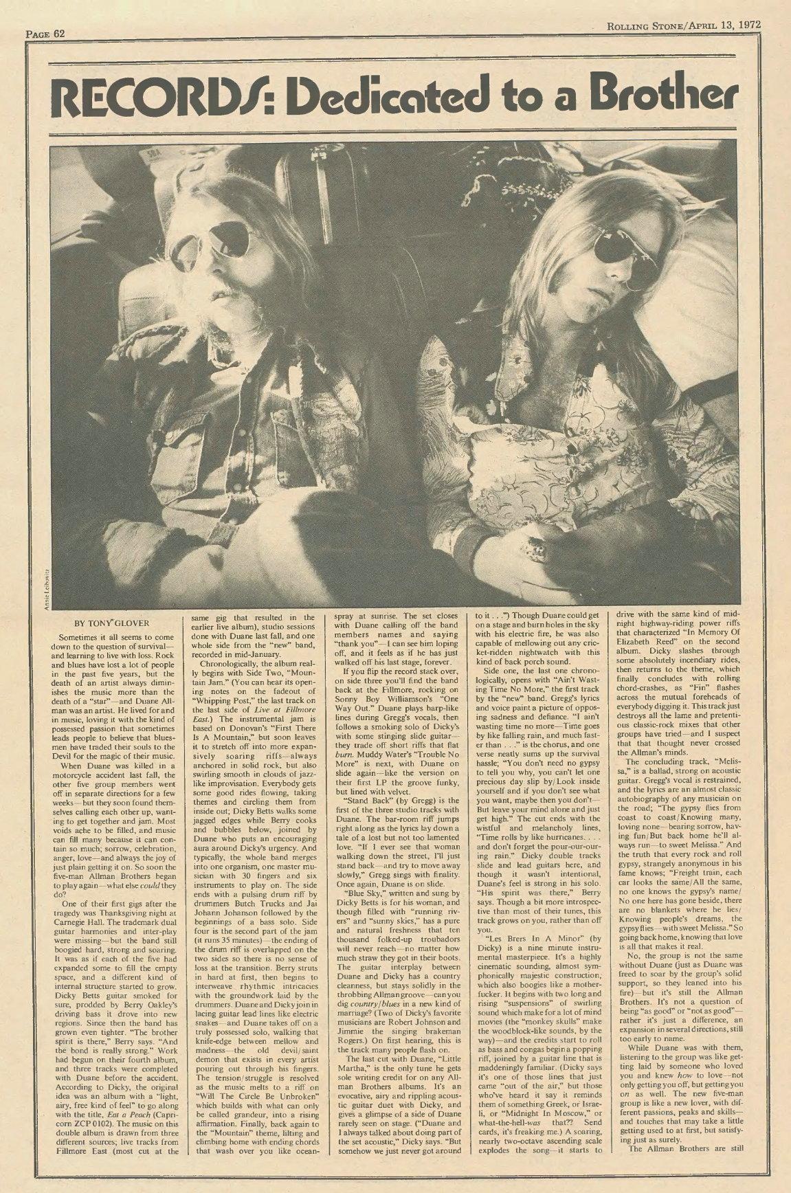 TONY GLOVER: Dedicated To A Brother (first published in 'Rolling Stone', April 13, 1972, Issue No. 106)