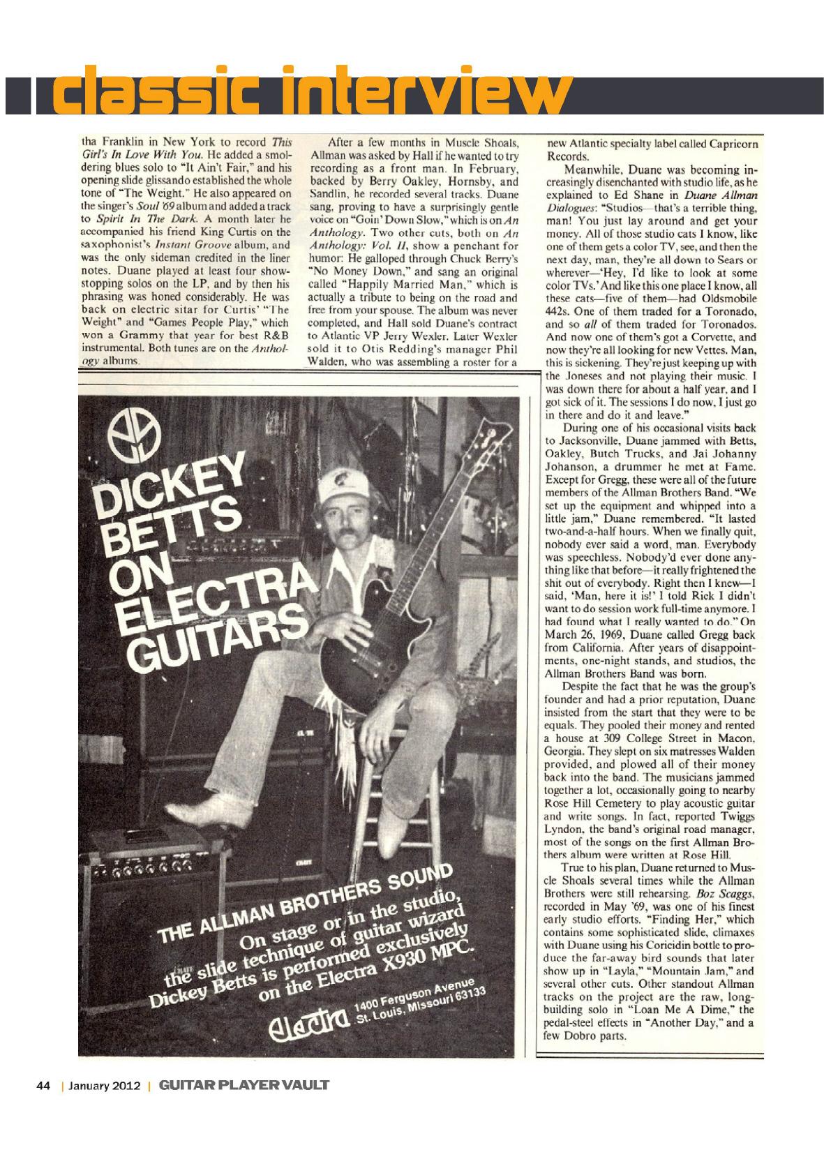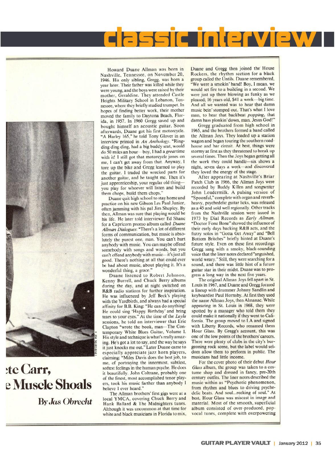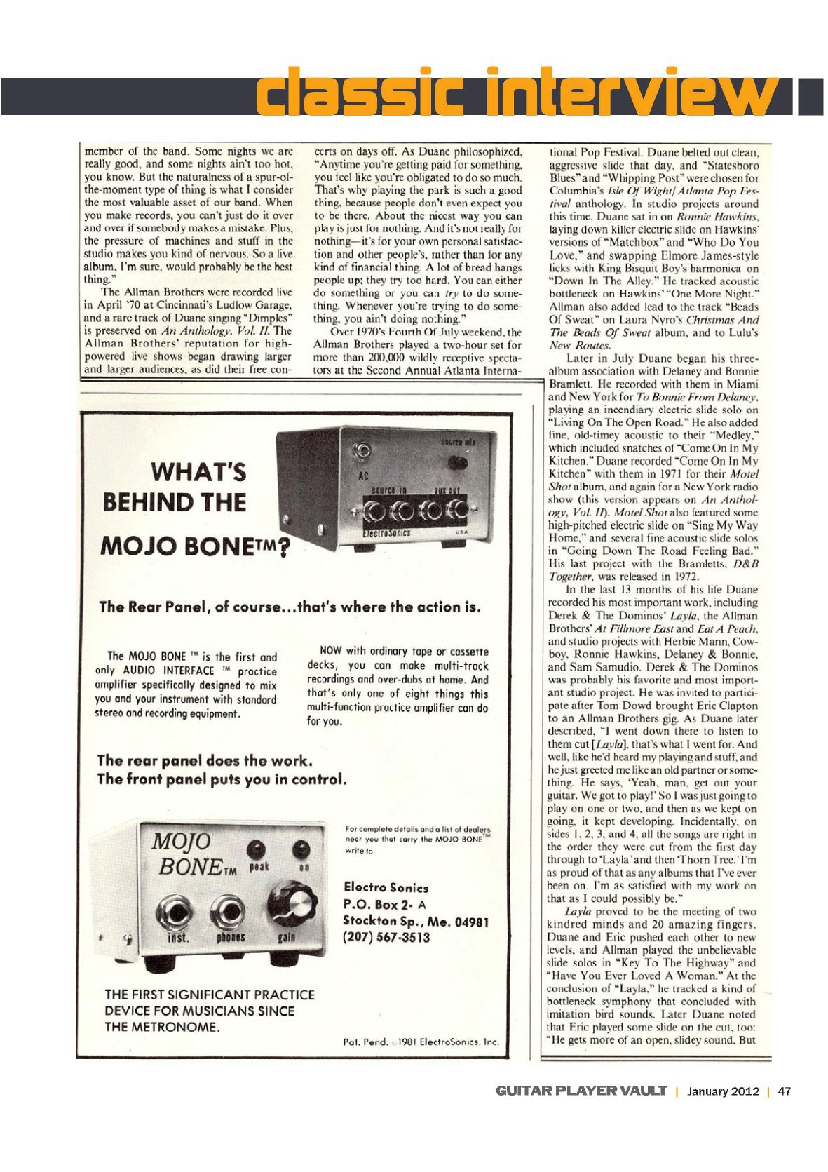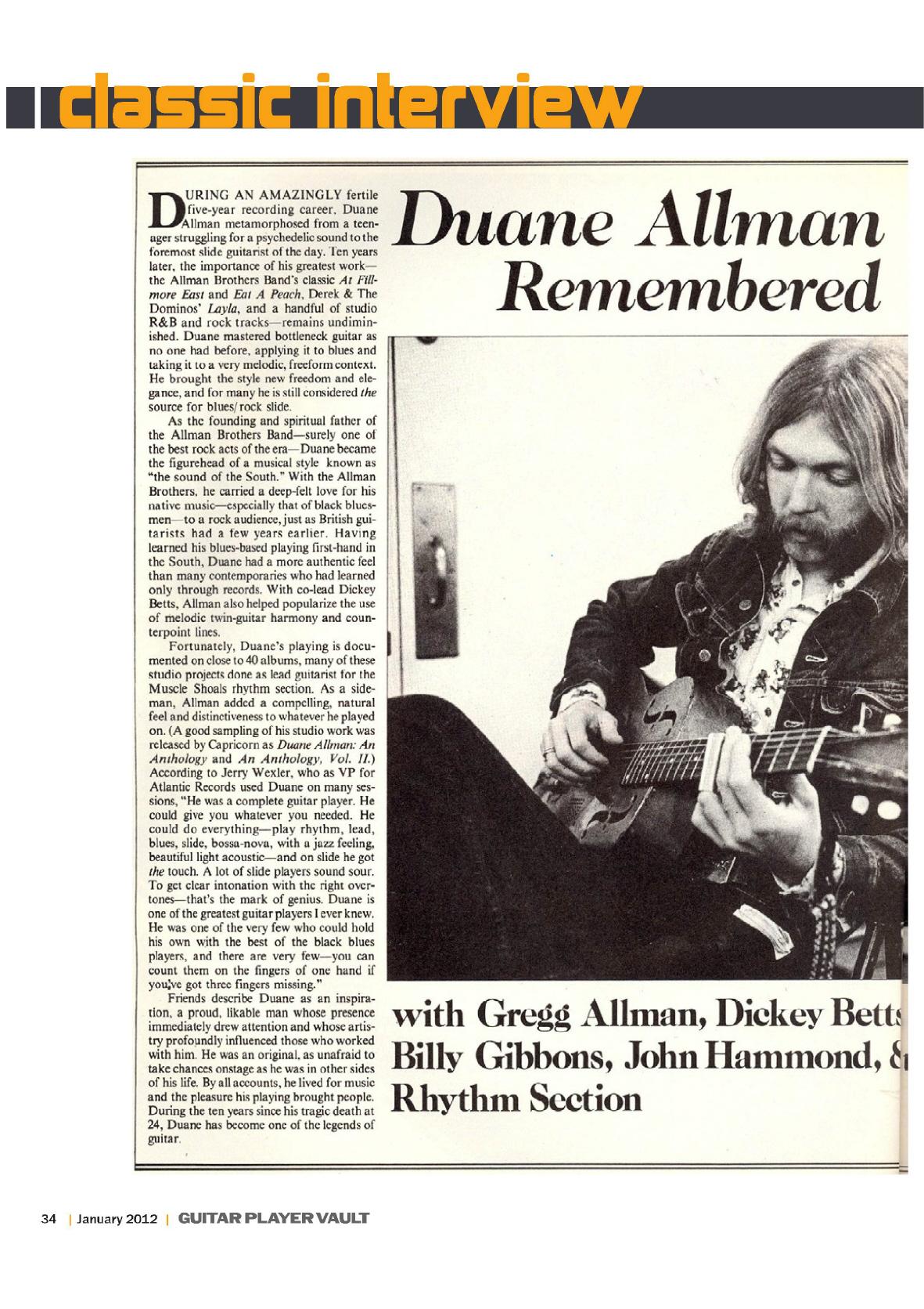JAS OBRECHT: Duane Allman Remembered Online re-issue of the 1981 'Guitar Player' article (first published in 'Guitar Player', October 1981, Vol. 15 No. 10)