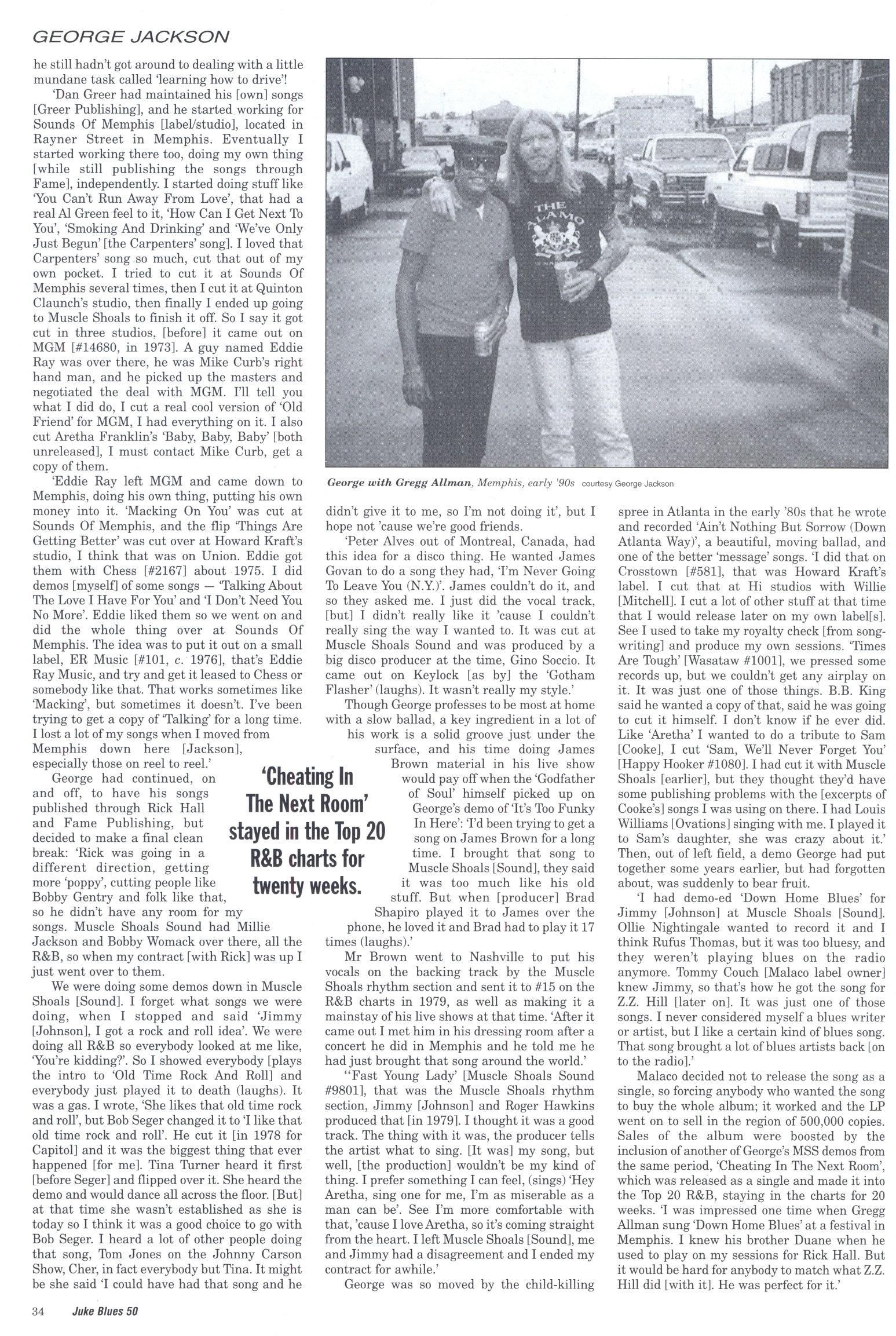In the article 'George Jackson From The Heart', published in 'Juke Blues' magazine (UK, issue no. 50, early 2002) George Jackson confirms that Duane Allman played on his sessions at Rick Hall's FAME Studios in Muscle Shoals, AL: