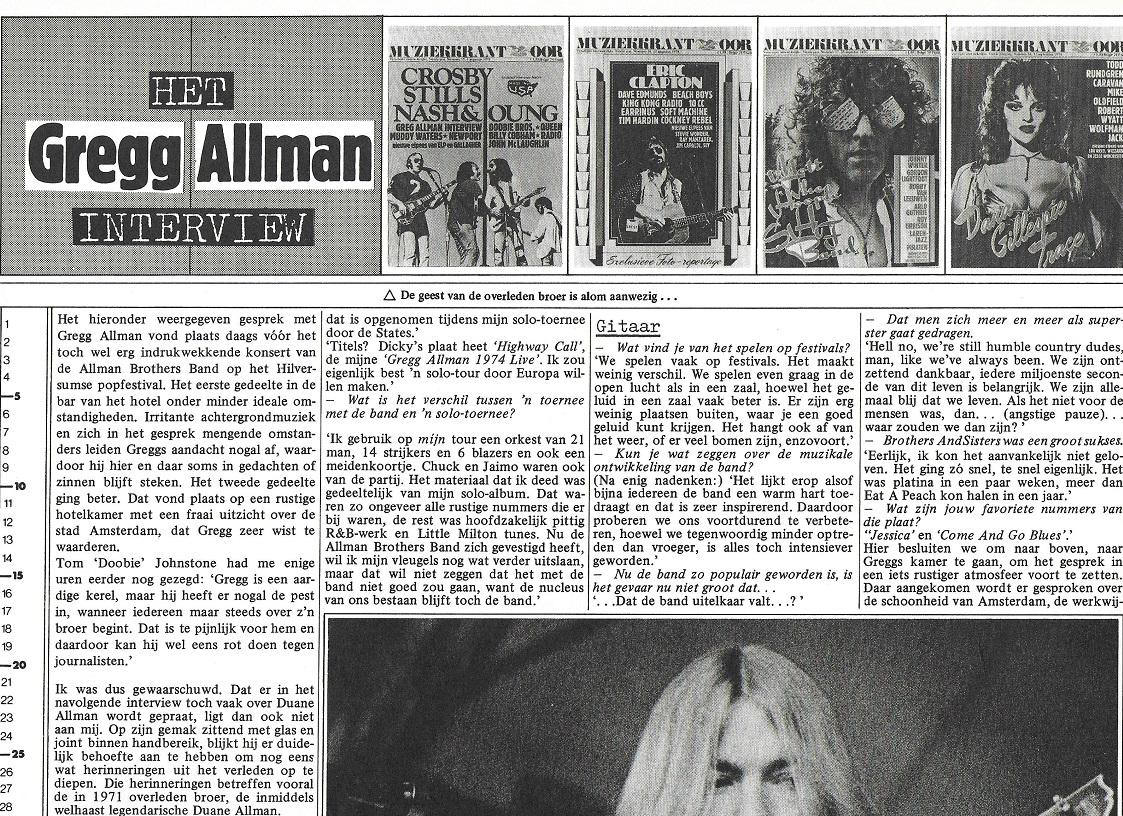 Het Gregg Allman Interview (first published in 'Muziekkrant Oor', The Netherlands, August 1, 1974)