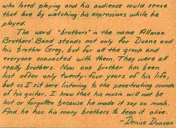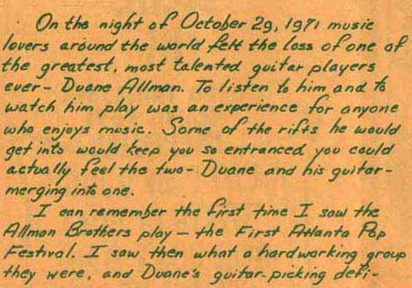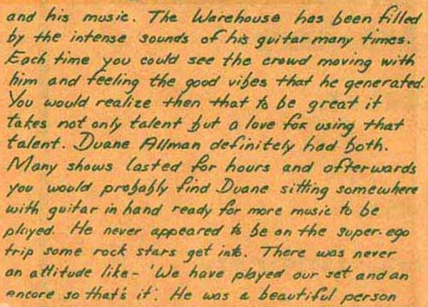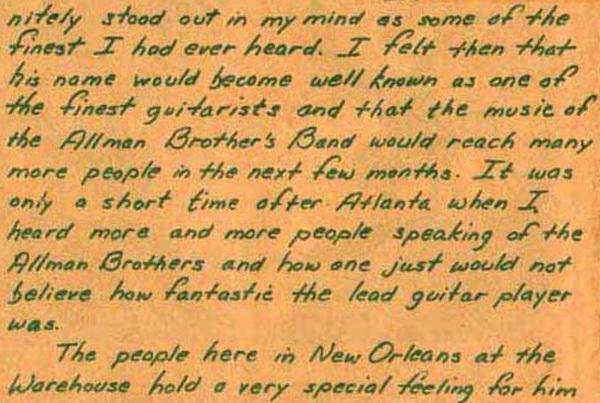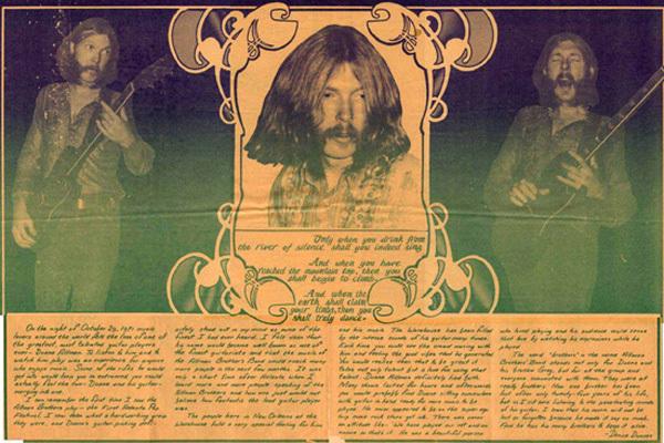 IN YOUR EAR November 1971, Issue No. 20 'The Warehouse' in New Orleans, LA paid a tribute to Duane Allman in their own magazine 'In Your Ear'