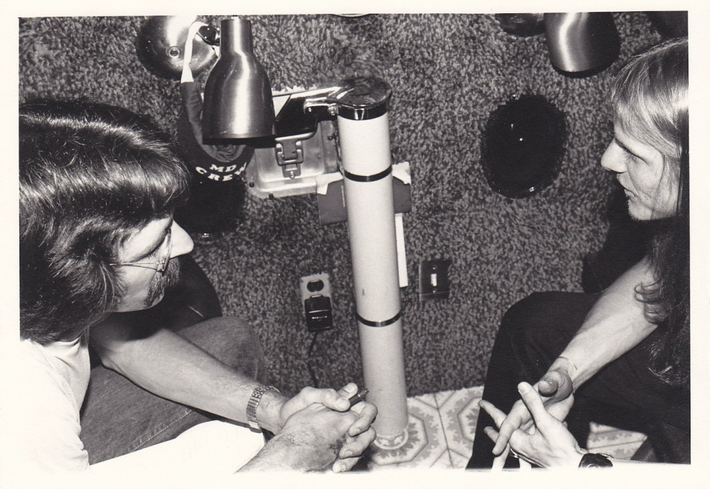 I met up with the Dixie Dregs for the first time in California on June 8, 1978. During my interviews with Steve Morse and bassist Andy West, both musicians encouraged me to talk to Twiggs. Steve introduced us. I liked Twiggs instantly. In those days, Levi jean jackets only had pockets on the outside, and Twiggs showed me how he’d modified his by taking the back pocket off of a pair of Levi pants and sewing it on the inside of his jacket. When I mentioned that that’d be a useful pocket for hiding the band’s cash, Twiggs grinned, “It’s even better for a pistol.” Twiggs invited me back to his custom tour truck to talk shop. Looking at his watch, he told me, “I’ve got 25 minutes before they clear the stage.”