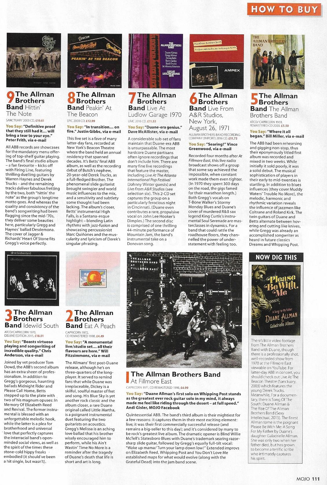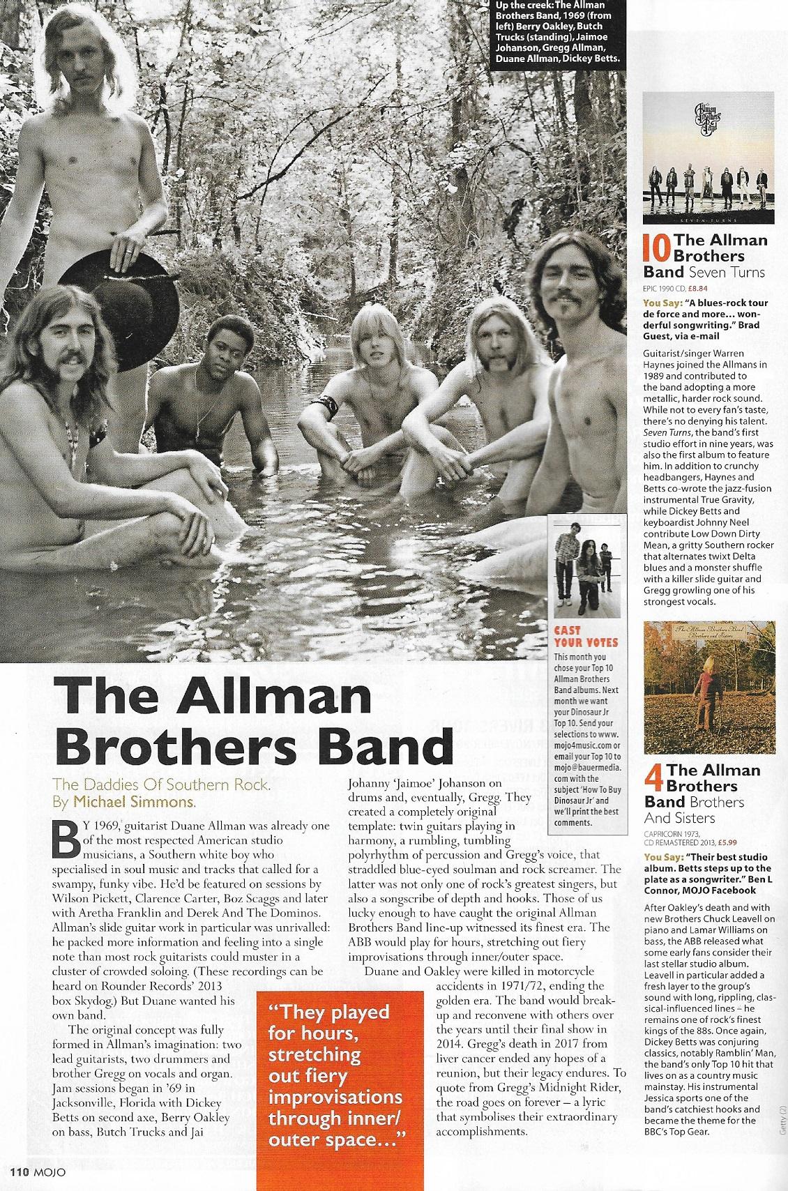 MICHAEL SIMMONS: The Allman Brothers Band - The Daddies Of Southern Rock (first published in 'Mojo', UK, September, 2018, Issue 298)