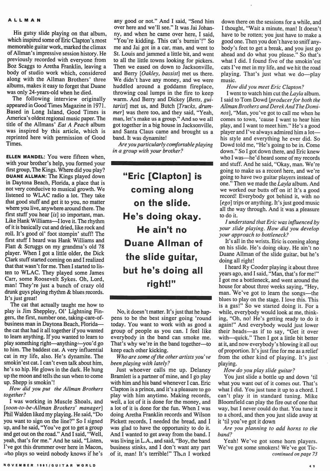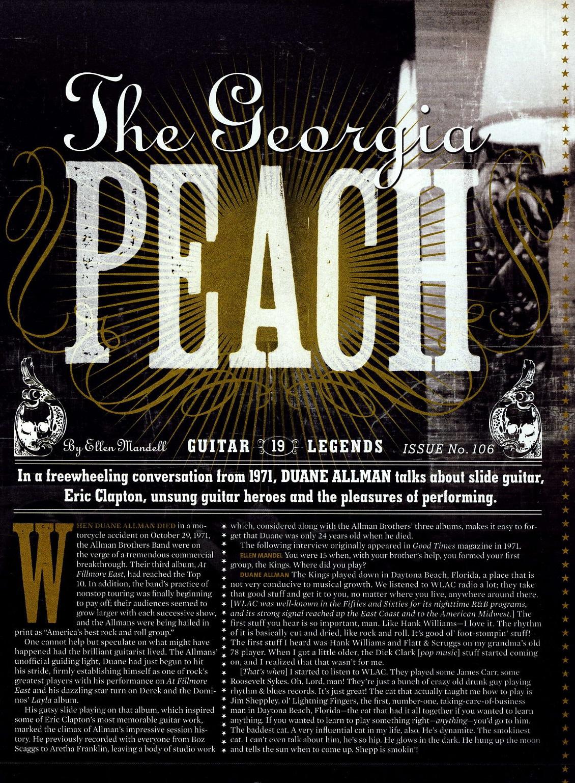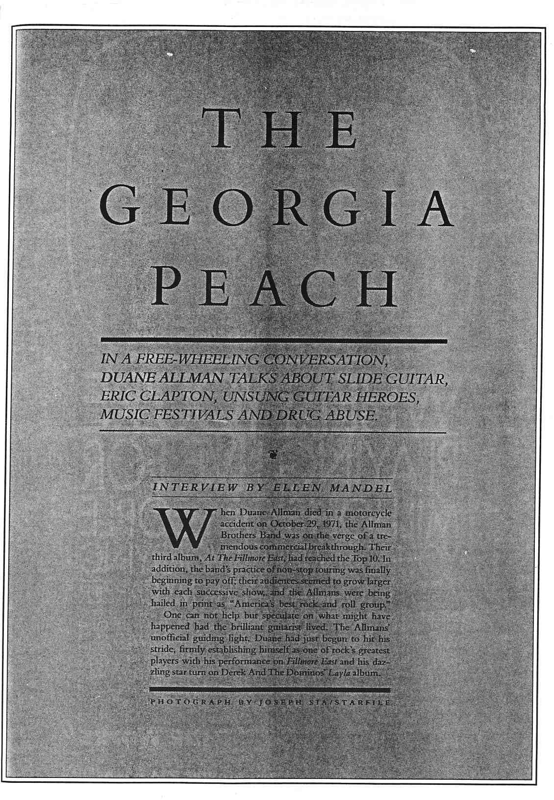 ELLEN MANDEL: The Georgia Peach (first published in 'Good Times Magazine', April 1971) (reprinted in 'Guitar World', November 1991) (reprinted in 'Guitar Legends, January 2009)